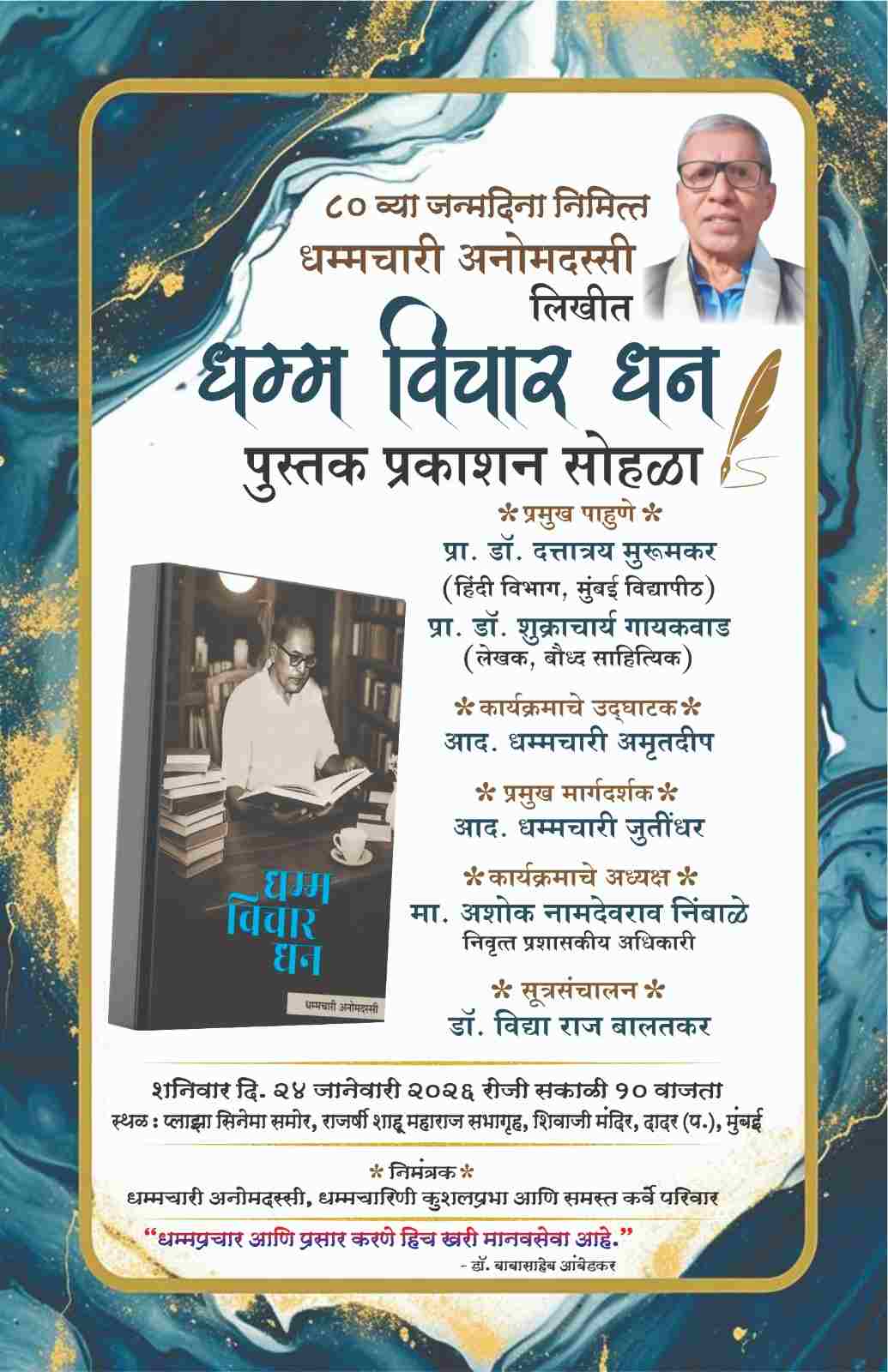 धम्मचारी अनोमदस्सी लिखित ‘बौद्ध विचारधन’ पुस्तकाचे २४ जानेवारीला मुंबईत प्रकाशन