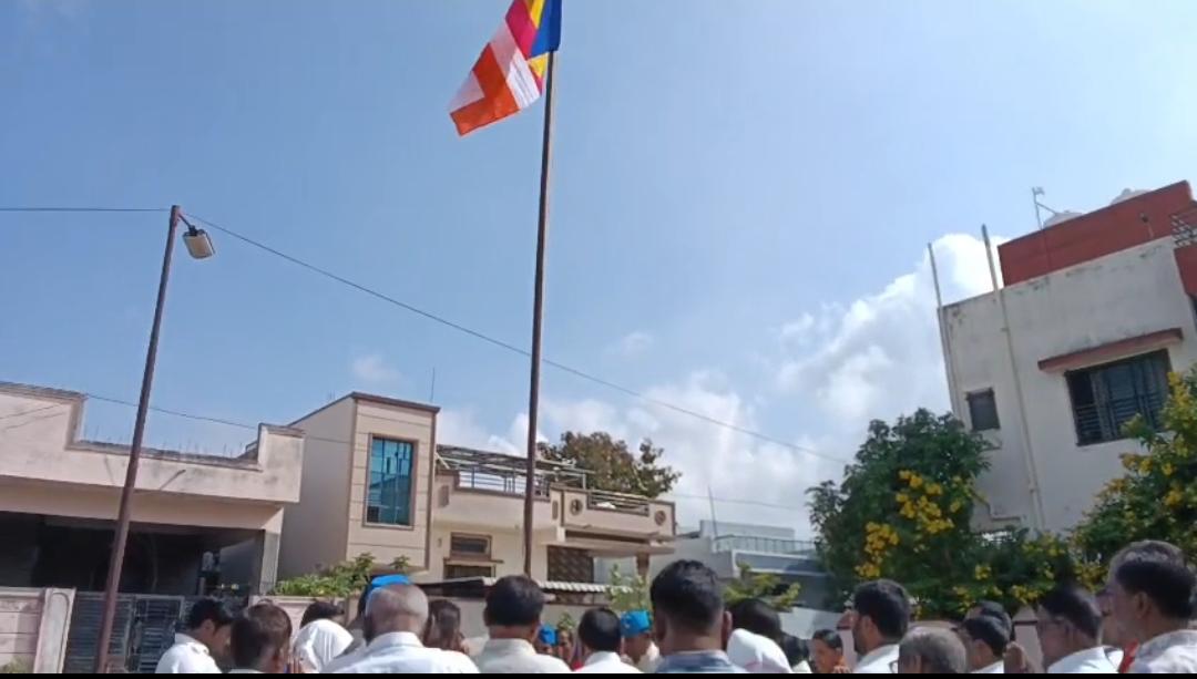 भारतीय बौद्ध महासभेकडून पंचरंगी ध्वजाचे ध्वजारोहण