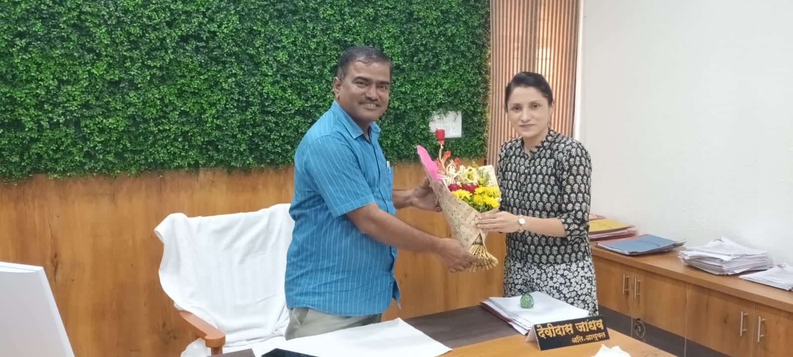 गुरुवारी (दि. ६) त्यांनी पदभार स्वीकारला. यावेळी अतिरिक्त आयुक्त देविदास जाधव, उपायुक्त डॉ. पंजाबराव खानसोळे, मुख्य स्वच्छता अधिकारी कलीम शेख, सहाय्यक आयुक्त खदीर शेख, पर्यावरण अधिकारी, सन्मती मेस्त्री, स्वच्छता विभाग प्रमुख, रमाकांत पिडगे,मालमत्ता व्यवस्थापक, शुभम बावने,शिक्षणाधिकारी श्वेता नागणे यांच्यासह सर्व विभाग प्रमुखांनी त्यांचे स्वागत केले.