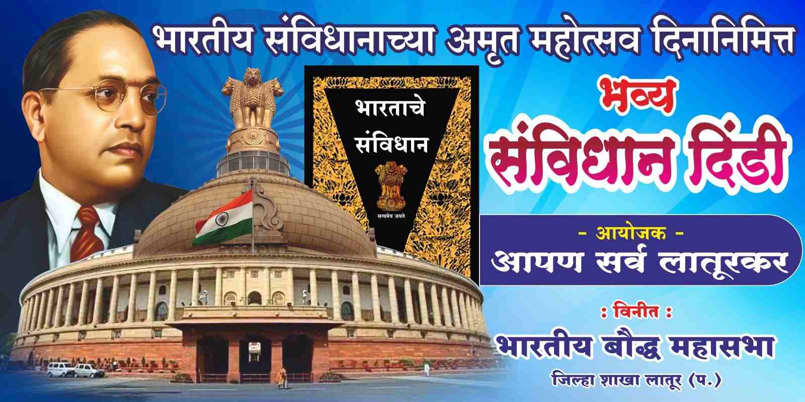 संविधान स्वीकारल्याच्या स्मरणार्थ आणि घटनेचे शिल्पकार डॉ. बाबासाहेब आंबेडकर यांच्या अध्यक्षतेखाली संविधान सभेच्या मसूदा समितीच्या समतावादी संविधान रचना, वंचित, शोषित घटकांचे अधिकार सुरक्षित केले. त्यांचा सन्मान करण्यासाठी संविधानाच्या अमृत महोत्सव दिनानिमित्त २६ नोव्हेंबर रोजी सायंकाळी पाच वाजता डॉ. बाबासाहेब आंबेडकर चौक येथून “संविधान दिंडी” चे सर्व लातूरकरांच्या वतीने आयोजन करण्यात आले आहे. या रॅलीमध्ये लातूर शहर व परिसरातील सर्व नागरिकांनी मोठ्या संख्येने सहभागी व्हावे, असे आवाहन भारतीय बौद्ध महासभा जिल्हा शाखा लातूर(प.) च्या वतीने करण्यात आले आहे.
